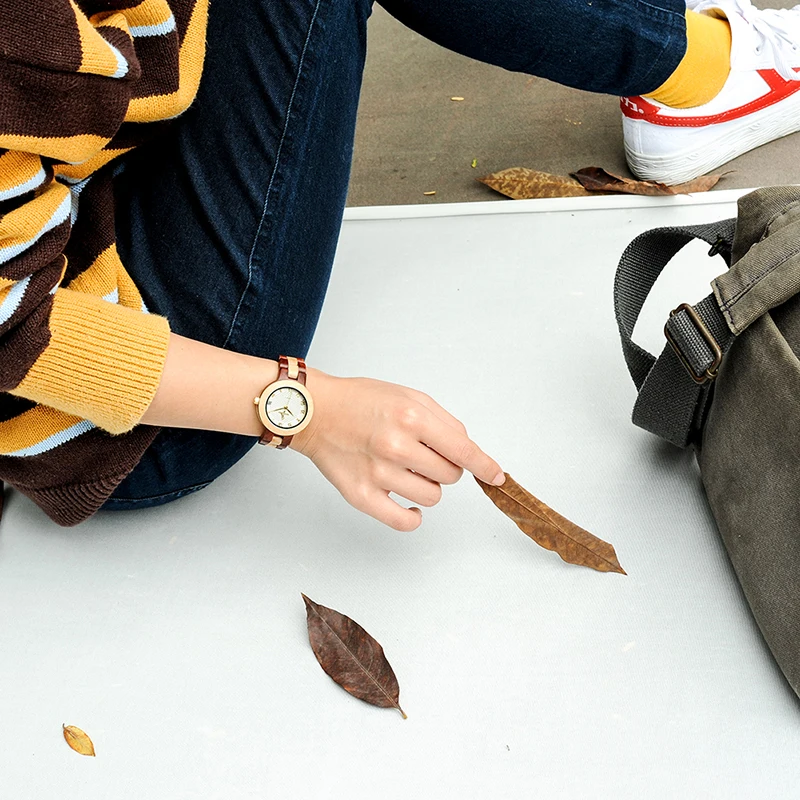 RELOJ DE BAMBÚ Y MADERA BOBO BIRD MUJER PULSERA DISEÑO CUARZO. CAJA